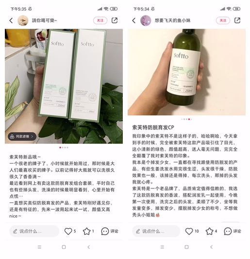 比如网友“想要飞天的鱼小妹”对索芙特防脱育发CP组合使用之后便赞不绝口,一方面产品小清新的外包装颜值高,非常符合年轻人的审美胃口,另一方面相比传统洗发水生涩干燥的情况,这套CP组合搭配润发乳一起使用,会让头发柔顺的多。网友“请你喝可乐”从小就使用索芙特,已经形成了品牌忠诚度,觉得用起来非常香,而这次的全新升级更是看到了避免脱发带来的希望。