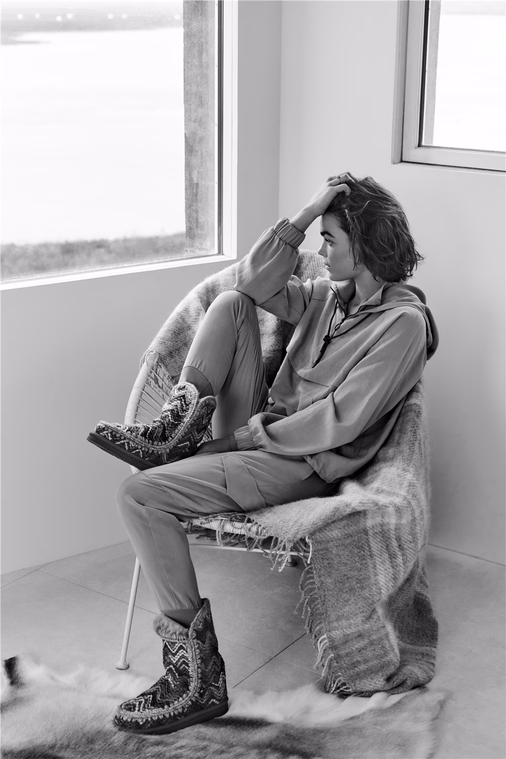 mou 2019秋冬系列从自然汲取灵感,将缤纷的的色彩和丰富的材质融入鞋款的设计。新品沿用高级皮毛面料,并在诸多经典鞋型上大胆运用色块拼接、动物纹路、金属铆钉、钻石亮片、刺绣编织等创意元素,打造出多款优雅时髦鞋履。本季还推出了包括ESKIMO TRAINER、RUNNING等多款运动休闲鞋型,通过简约的设计和中性的配色突出机能风格,在兼具功能性的同时也为冬日注入潮流活力。