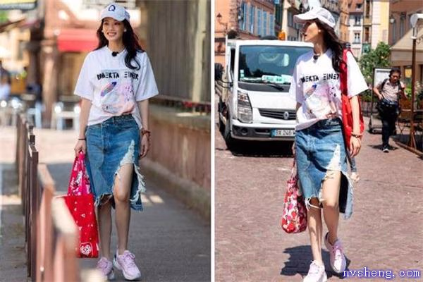 1.T恤与牛仔裙的组合是我们最常见的,就像白T黑裤的经典CP一样,简单随性,经久不衰。但是呢,就是这样一种搭配也可以演绎出不同的风格。清新条纹T恤搭配深蓝色牛仔裙,就是夏天的感觉,像喝了啤酒吹着海风的清凉;用吊带背心搭配浅蓝色系牛仔裙,各种色彩鲜亮的上衣与牛仔裙搭配起来,减龄又时尚。