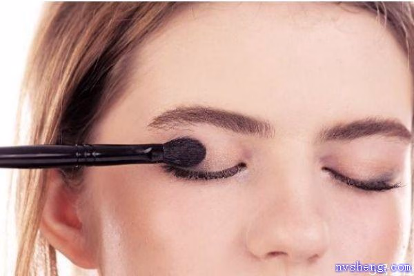 1、用浅色的眼影在眼皮上打底,大面积晕染,作为眼影的底色。