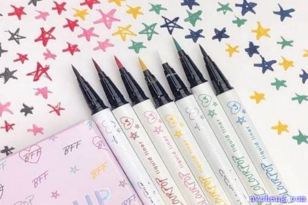 ColourPop新出了彩色眼线液笔,全7色,像小时候都要有的彩色铅笔,好回忆杀呀!cp出新品的速度我钱包要跟不上啦!!这次出的彩色眼线笔真的好有童年杀,小时候都要有这样一大盒彩色笔才是有面子的小朋友好吗!!粉粉的外壳包装,眼线笔用来节日画个小心心小图案还是很有意思哒。相比于单一的黑色眼线,彩色眼线不仅能让妆容更吸睛,还能根据当天的服装来做搭配,让整体造型更完整~但是如果没有找到一支好的眼线笔,出水不流畅,颜色的饱和度不高,也是完全可以毁了一个妆容的!