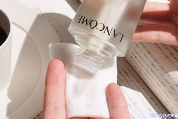 2.极光水。用摇匀的极光水润湿化妆棉,擦拭肌肤,在鼻翼、嘴角等部位进行重点的擦拭,然后可以用双手轻轻按压,加快肌肤吸收。
