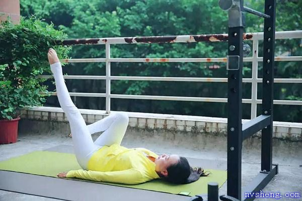 同样是平躺在地上曲起双腿,然后将右腿竖直上抬,直到与地面垂直,接着左腿再做拱桥状,最后双腿交替,重复刚才的动作。