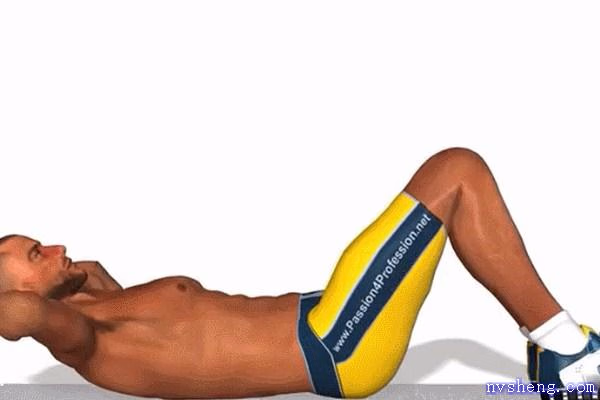 1、平躺,背部直至头部紧贴地面,双手向外自然打开放在躯干两边,掌心贴地,肘部微曲,双脚并拢,膝关节呈90度角,大腿与地面垂直,这是预备动作。