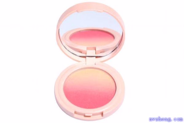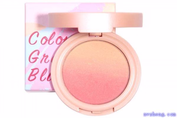 这是一款哑光质地的渐变色腮红,其中还带闪,能够打造出一种少女一般的清纯粉嫩感,有一种初恋少女的感觉,适合白皙肌肤的妹子选择。