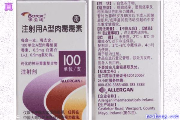 瘦脸针美国保妥适真假之包装对比美国保妥适瘦脸针虽然是进口的肉毒素,但一定要保证你打的这支的包装上有中文字样哦。所以,在医院里面,正规的保妥适瘦脸针的包装是中英文双语的。这一点真假对比是最容易被仿冒的,我们接下来再看真假美国保妥适的其它点不同。