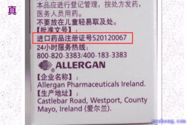 瘦脸针美国保妥适真假之镭射标志对比在美国保妥适的标签上,有“ALLERGAN”的镭射标志,在灯光下移动会有彩色的光芒。而假的保妥适则一般直接没有这个标志,有的假货美国保妥适尽管有“ALLERGAN”的镭射标志,但字样并不工整。拿到保妥适的瓶子后,你一定要看清楚了。