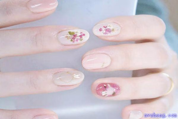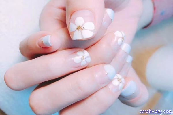 最后一款的话很适合淡雅的妹子,因为这一款采用的整体是乳白色甲油,配合了花朵作为装饰,看起来就是一种温柔的感觉呀~