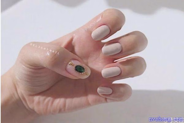 第七款是非常简单的一款,采用的整体乳白色甲油,配合大拇指上面的宝石作为装饰,低调奢华有内涵的一款哟~
