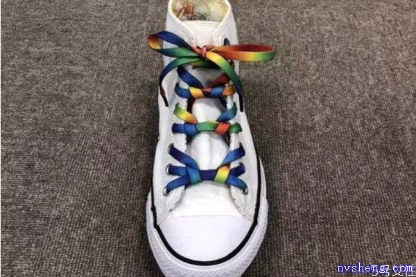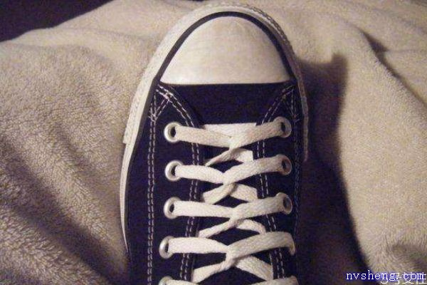 帆布鞋怎样绑鞋带最好看1、先把绿色鞋带的一端在鞋子内侧打好结,没打结另一端从左边第一个孔系出,系到右边的第一个孔,从外面向里面系。