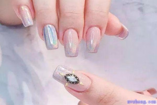 5.用硅胶棒、手指或者棉棒取少量极光粉在甲面轻轻拍打后摩擦