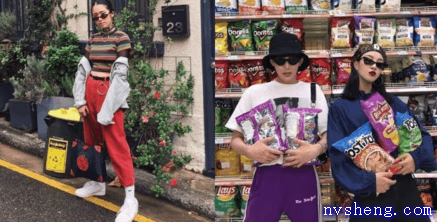 最经典的原宿风元素就是黑白对比色的棋盘格纹,可能只是细节点缀棋盘格线条或是大面积的黑白棋盘格纹路布料,搭配方式除了黑白搭配外,可以选择跳色的亮色系,特别可以使用鲜明的萤光色系更让人为之一亮。