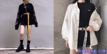 最简单的单品利用就是超长字母腰带,随意的穿上长版可做连身裙的上衣,大多长版上衣的设计都是超大码的版型,这时只要加上长腰带,腰部线条显而易见之外,当发型参考法式辫加细双辫、擦上大红唇及穿上长袜或是披上衬衫,整体风格即刻从慵懒睡衣反转成街头风格。