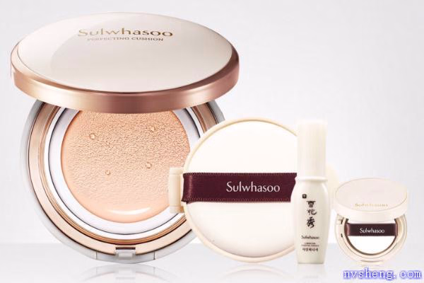 3、Sulwhasoo雪花秀致美润白气垫粉底液。这款气垫采用植物凝萃提亮,水润度较高,持久性也很强对整体的肤色改善有很大的帮助。适合所有肤质。