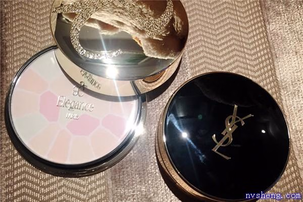 elegance极致欢颜蜜粉饼,在民间俗称e大饼。盒子非常的貌美,金闪闪的,打开来也很触动少女心,味道香香的,使用感很好。含保湿成分,冬天干皮用也不会有卡纹卡粉的情况,带一些控油体谅的效果,没有什么遮盖力,怎么叠加也不会让妆面斑驳。粉面本身很白,但上脸不会太白,只对肤色有少许提亮的作用。清透干净,自然服帖的妆效。有雾面柔焦的效果,显得皮肤又嫩有白~