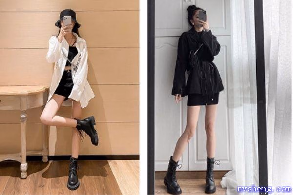 骑士靴的独特之处在于靴筒的硬朗,能修饰出完美的腿部曲线,骑士靴会让整个腿部看起来十分纤细还能够增添不少的帅气感。骑士靴相比短靴的靴筒更高,许多骑士靴在膝盖处有尖口的设计,能延伸腿部线条。短靴露出肌肤穿着帅气又迷人,十分展现身材,两种靴子都很有气质,显身材。