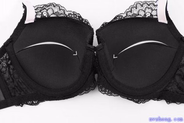 2、正常的内衣罩杯极富圆润完整感,变形的内衣罩杯会出现罩杯褶皱、鸡心翘起、钢圈弯曲变形、底围松垮、胸垫海绵分布不匀称等问题。