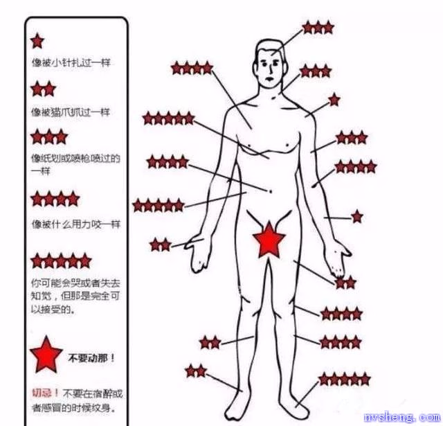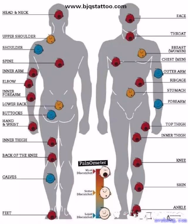 惭愧惭愧……在这个位置的时候我眼泪忍不住流出来了,真是自然而然地流的控制不住那种!第三就是腋下和肋骨边,第四就是大腿内侧。其它位置就不清楚了!大家可以评论补充,最后希望大家纹身前一定要想清楚。
