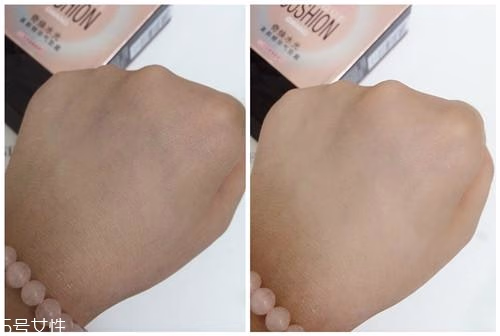 气垫霜果然是轻薄透亮哦,遮瑕效果并不逊色,而且很水润.,出去玩一天也不会显得脸油乎乎的,非常的温和,相信任何肌肤使用起来都没有问题的。这款气垫霜性价比很高,非常适合懒人使用,上班族裸妆必备!!