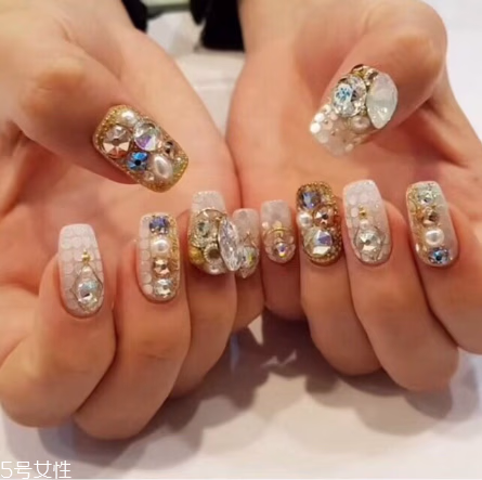 新年还是要做款式的吧,一波喜庆的有点装饰的美甲,华丽而不浮夸。