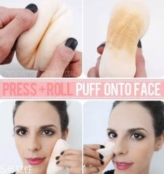 粉扑,很容易蘸取过多,所以,一定得蘸后首先搓揉,让粉质分布均匀,用手指弹掉多余粉,再上妆。用粉扑打圈按压,最适合营造瓷光、丝缎光这类细致柔光效果,脸庞立体感更好