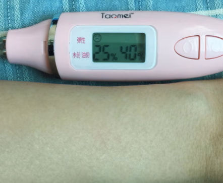 下面来试用感受下。我用的是手臂皮肤。可以看到,皮肤略干燥较缺水,纹理较多。