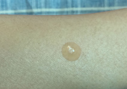 滴了一滴精华在手臂。淡黄色的液体,刚滴出来感觉有点点浓稠,实际上延展性很好。