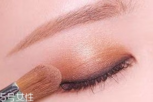 第一步:用大号眼影刷沾取颜色后大面积平铺在眼皮上。