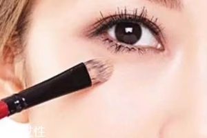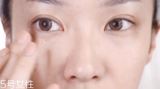 法令纹处用比肤色亮的色号沿着法令纹涂抹,然后轻拍至均匀。建议使用亮色的带刷头的遮瑕笔。