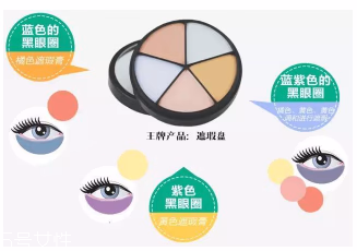 黑眼圈是遮瑕膏一生的敌人,而且又因为症状差异还需要不同的调色去遮盖。具体可以参考这张图。