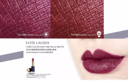 430颜色是丝绒亚光感的浆果色,还带有一点银紫色的偏光,上嘴有点偏紫调,适合气场大有个性的妹子,薄涂是清冷的豆沙色,厚涂就是浓郁的酒红色,可以说是非常大女人的一个颜色了,看到这个颜色的瞬间,脑子里突然想到的人竟然是万达妮…