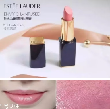 #210是通透的樱花淡粉色,上唇后很保湿,感觉双唇水嫩嫩的,给人一种邻家女孩般自然可人的感觉。虽然颜色很圈粉,但白色的底调很明显,容易显得脸色苍白,所以这支更适合白皮。
