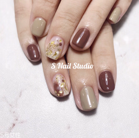 过年不一定要红色的美甲哦 这款焦糖色超级美的!!晕染加点小金箔~也很新年哈哈哈!