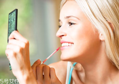 7、唇部干燥脱皮时,可在化唇部彩妆前先以具修护功能的唇部修护霜打底。油性护唇膏滋润度较佳,却容易使口红晕开,所以上口红前应尽量避免使用。如干燥现象并不严重,可直接使用滋润性较高的油质口红。