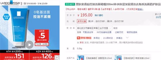 3、理肤泉清痘控油洁面啫喱200ml——195元
