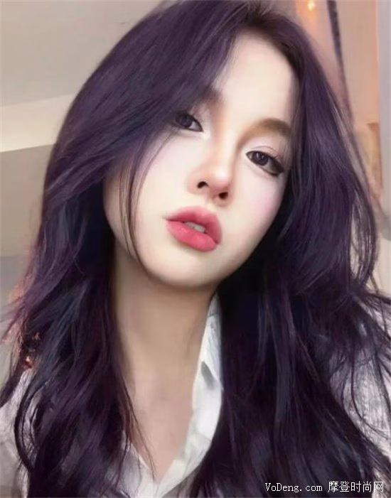 这种紫黑色,就像极了自然的黑色,非常隐形。如果你不在阳光底下,或者是灯光底下细细端倪的话,你是压根看不出来这个人染了头发的。紫黑色也是非常气质的一款发色,染上就有种高冷御姐范儿,也是很适合学生党染的一款发色。