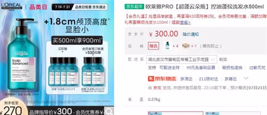 1、欧莱雅PRO超蓬云朵瓶控油蓬松洗发水——300元
