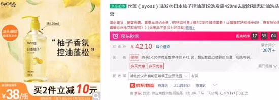 2、丝蕴洗发水日本柚子控油蓬松洗发露——42.1元