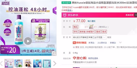 4、澳丝袋鼠海盐小蓝瓶氨基酸洗发水——77元