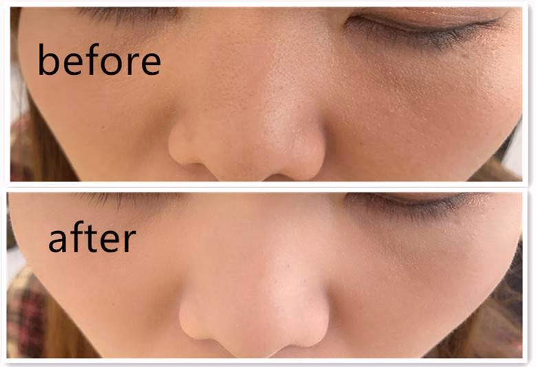 上脸效果我也很喜欢,是自带柔焦效果的雾面感妆容,有一种美颜开了2-3度的感觉,可以看下图,鼻翼两旁的毛孔基本都被遮盖了。