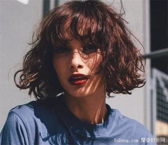 这种短卷发往往很是轻盈,一般长度在锁骨的地方,不会拉长脸型,搭配上乖巧的刘海,就能更显你的浪漫气质!法式刘海不仅能遮盖住你的额头,还能让你在视觉上显得脸短,长脸型的女生快试试!