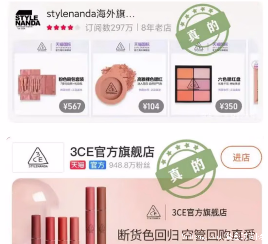 淘宝中的3ce官方旗舰店是正品的3ce,stylenanda海外旗舰店也是正品,但是其他的一律是假货。