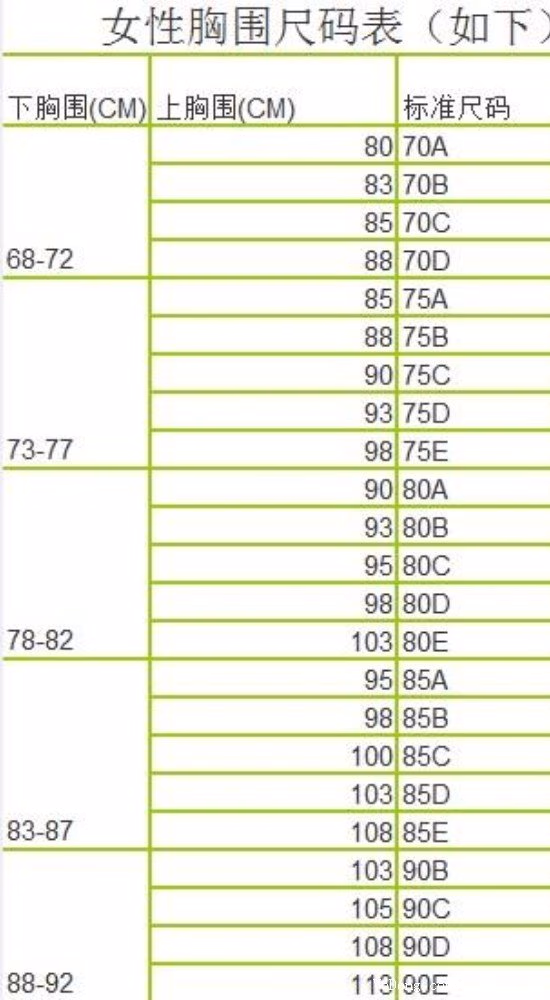 1、可能还有一些女生不太清楚文胸该如何挑选,找到自己的尺码,我们在这附上对照表。