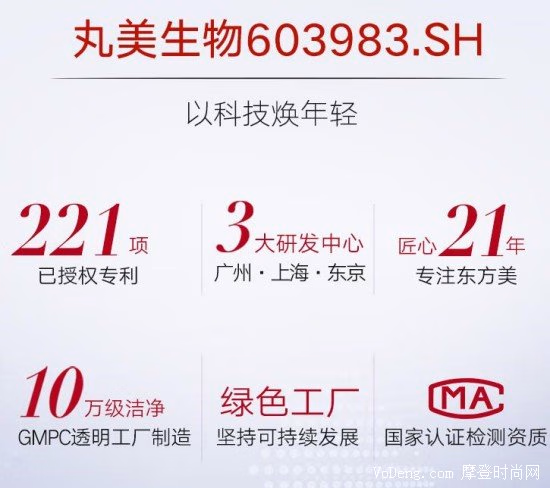丸美在技术研究上十分有底气,因为确实他们是日复一日、十年如一地在研究技术、开发产品。“以科技焕年轻”是他们多年未变的初心。丸美拥有221项专利,就拿销量最高的丸美产品眼部舒悦精华霜来看,69元的价格,丸美却在里面添加了昂贵的人参提取物,还在里面加入了多项有效专利,是的你的眼周紧致柔滑。