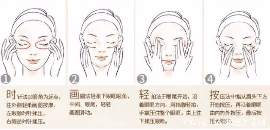 3、按摩完毕后,再用你手上的多余眼霜去按压你脸上的几个穴位,促进血液循环,这样就是正确的使用步骤啦。