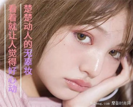 在日系裸色无辜妆的底妆上面,还是非常讲究的。细节的处理也是非常巧妙的,属于一种清透的半哑光、半水光的底妆,色号选择一般比较清新,非常自然。建议使用美妆蛋轻轻拍开,营造一种自身就有健康好肤色的感觉。