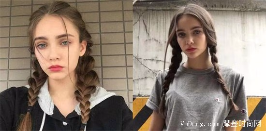 双辫子头也是非常适合头发硬的女生的,虽然可能会有点毛躁,但是捋一捋就能好多了。而且这个发型,当你持续了一段时间之后,再拆开,你就能得到一个木马卷卷发造型了,实在是一举多得!