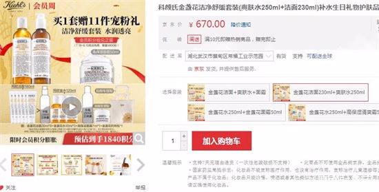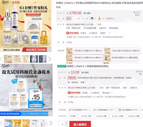 科颜氏家最贵的是早C晚A美白紧致礼盒,一套护肤品要1700元;而最便宜的是它家的其他渠道派样试用包,一套小样要15元。