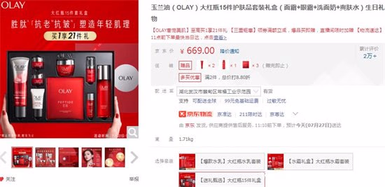 3、玉兰油大红瓶15件护肤品套装礼盒——669元