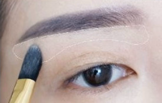 3.用粉底刷沾取遮瑕膏刷在眉尾下方,提亮眉尾下方眉弓处。